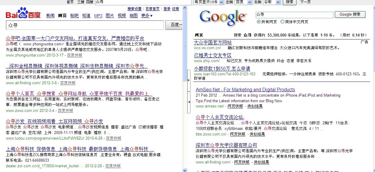 百度,众寻跟百度怎么听都像哥俩,笔者不得而知。